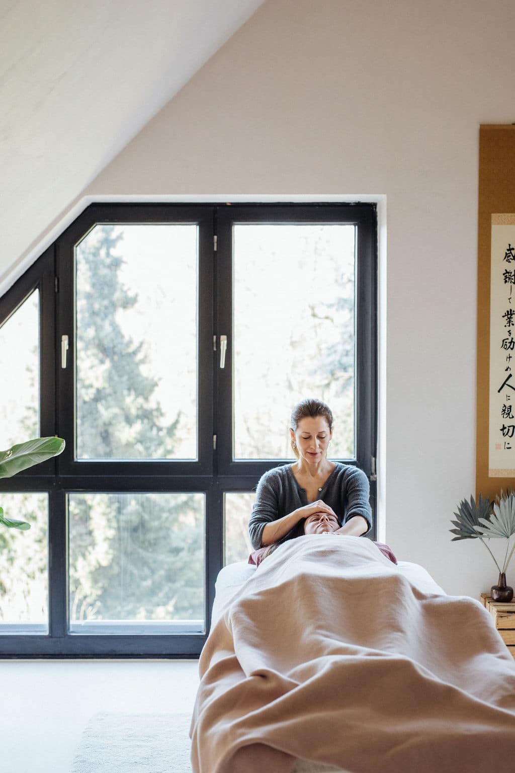 Reiki-Energie fliesst besonders stark durch die Handflächen des Reiki-Praktizierenden, weshalb Reiki meist durch Handauflegen angewandt wird. Die Hände werden hierbei in unterschiedlichen Positionen leicht auf den Körper der empfangenden Person gelegt oder befinden sich ein paar Zentimeter über dem Körper in dessen Aurafeld. Die persönliche Energie des Reiki-Praktizierenden vermischt sich dabei nicht mit der Reiki-Energie des Empfangenden und wird auch nicht an diesen weitergegeben. Während dieser Reiki-Behandlung liegen Sie vollständig bekleidet und nach Bedarf von einer Decke gewärmt auf einer bequemen Liege.